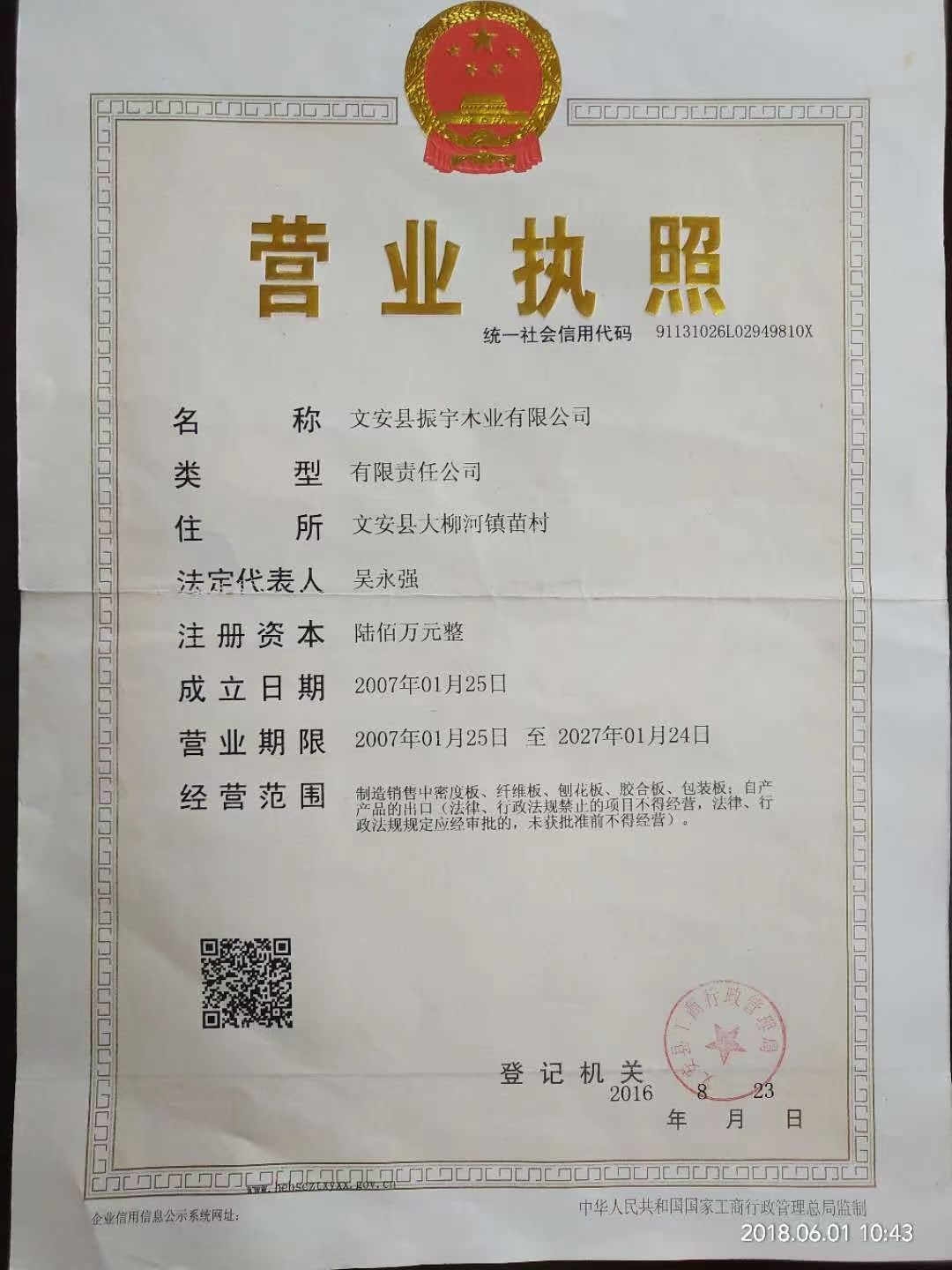 文安縣振宇木業(yè)有限公司位于文安縣大柳河鎮(zhèn)苗村文左公路南側(cè),交通便利,地理位置優(yōu)越,占地面積60000多平方米,于2003年3月籌建,2004年1月投產(chǎn),開(kāi)始稱(chēng)“文安縣振宇中密度板廠(chǎng)”,2007年1月改為“文安縣振宇木業(yè)有限公司”。 …